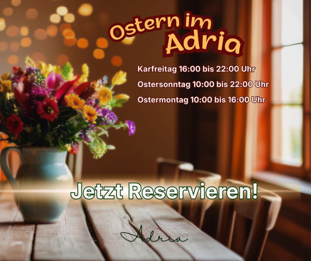 Im Adria gibt es ab 01.04. bereits leckere Spargelgerichte. Die Gaststätte ist auch am Ostermontag von 10-16 Uhr geöffnet.