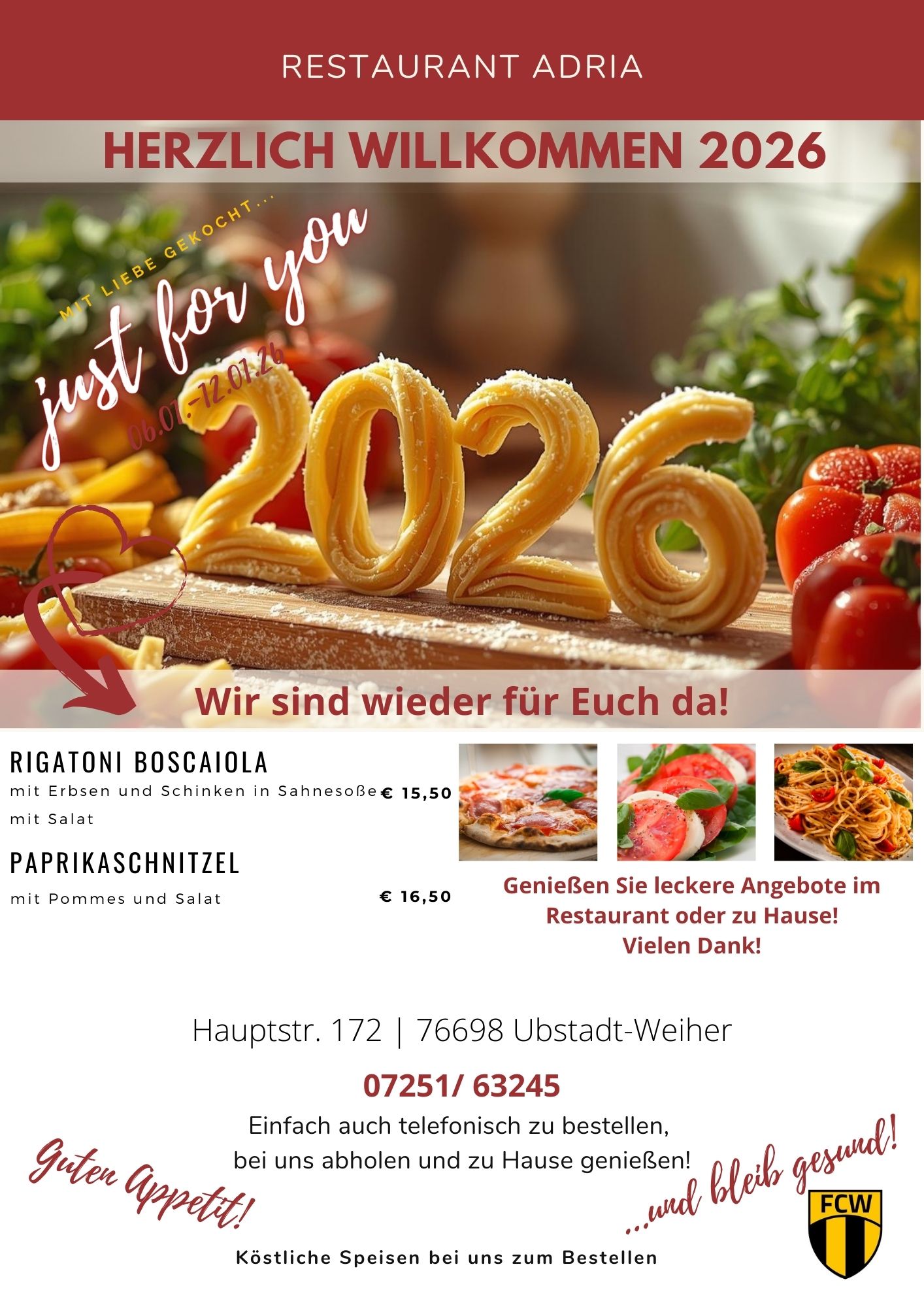 Wir wünschen Ihnen ein glückliches, gesundes Jahr 2026 und freuen uns auf Ihren Besuch im Adria!