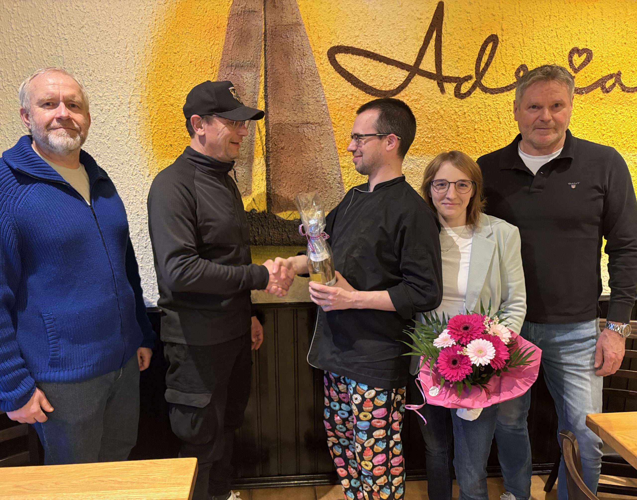 Ab sofort ist das beliebte Restaurant „Adria“ beim FC Weiher unter neuer Leitung. Nach über zehn Jahren haben Toni Missione und seine Familie die Leitung der Gaststätte an Jacqueline und Thorsten Stein übergeben. FC-Vorstand Boris Baumeister, Hauptkassier Achim Heinrich und – in Vertretung von Bürgermeisterin Katharina Kimmich – Gemeinderat Andreas Schroff haben das Wirtsehepaar herzlich begrüßt. Thorsten und Jacqueline Stein können auf eine große Erfahrung bauen und haben nach verschiedenen erfolgreichen Stationen vor einigen Jahren die Gaststätte Vogelpark in Kirrlach übernommen. Auch künftig wird es beim FC Weiher eine deutsch- italienische Küche geben. Gastwirt Toni war sehr beliebt und hat mit einer hervorragenden Küche zu fairen Preisen Gäste aus der ganzen Region verwöhnt. Kürzlich in der FC-Generalversammlung wurden Toni und seine Familie bei Standing Ovations verabschiedet (wir berichteten).